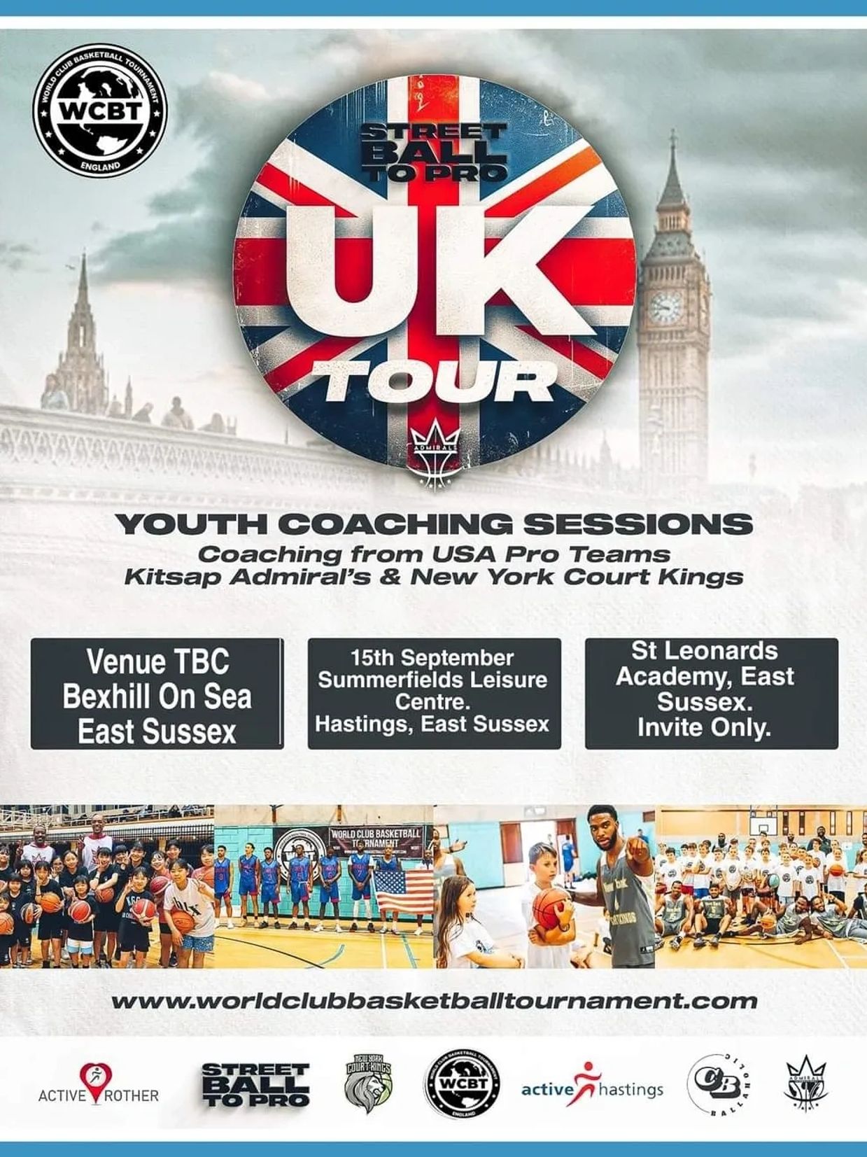 The Streetball to Pro Tour 🇺🇸 Youth Coaching Sessions are coming to #Sussex UK 🇬🇧 as part of the World Club Basketball Tournament C. I. C